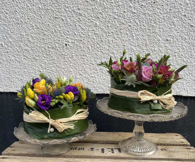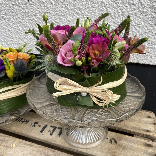 Floral Cake Arrangement - with Glass Cake Stand