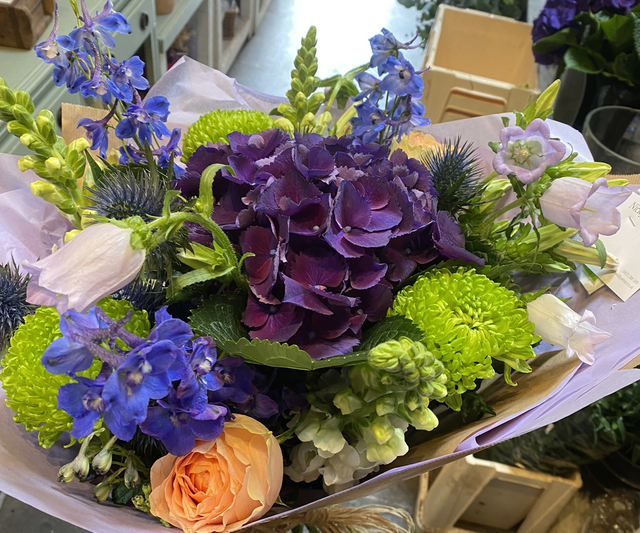 Hand tied bouquet - comes WITHOUT a box in water and no plastic wrapping. Sometimes unsuitable for delivery if the recipient may not be at home, the flowers will be left without water. But for collections and other deliveries, it’s a great option to save packaging. Please send us a message with any specific colour or flower variations.