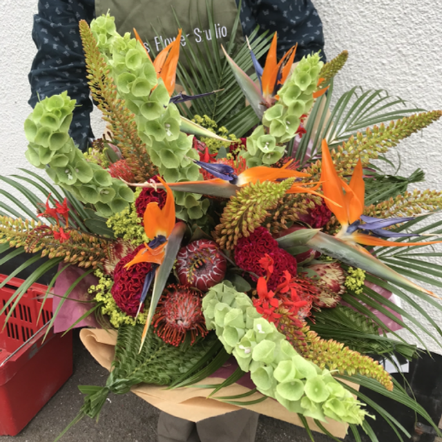 Selection of bright tropical flowers, please order at least 2 days in advance to enable us to get the best selection of flowers